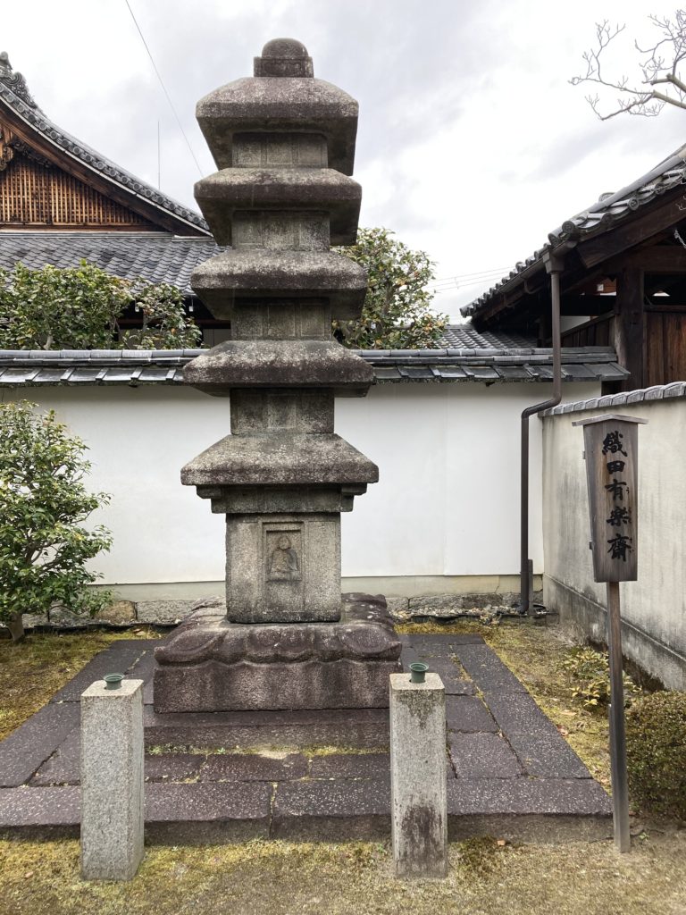 武野紹鴎(たけのじょうおう)は、千利休の師としても知られています。この塔はもともと大阪の堺にあったものを江戸初期に有楽斎が正伝永源院に移したと伝わっていますが、
