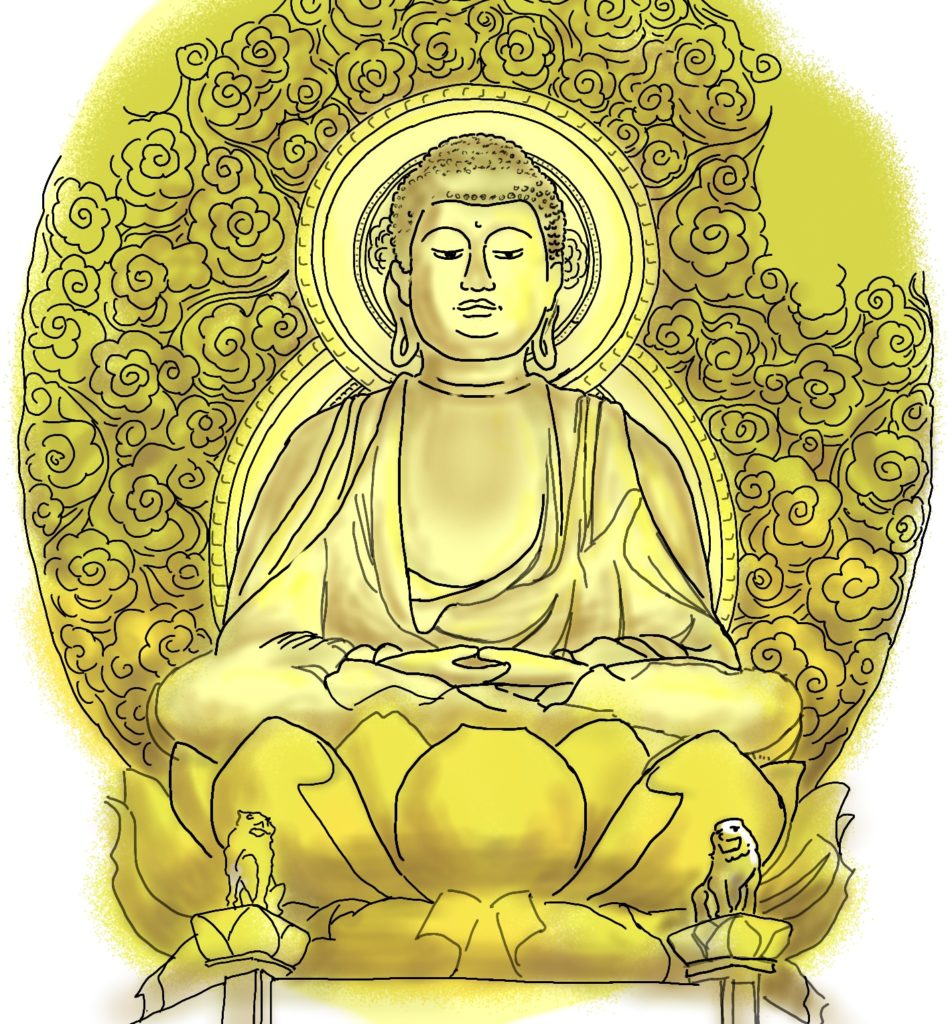 撮影禁止でしたので本尊の釈迦如来坐像はイラストを描いてみました。
