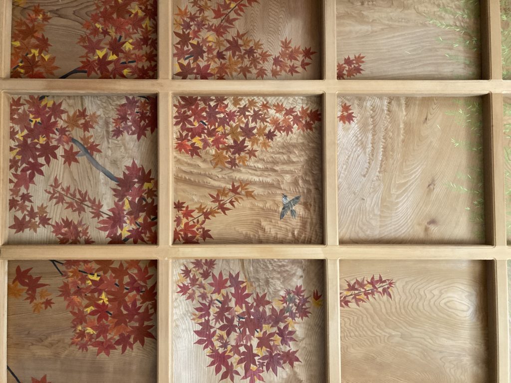 天井画も描かれており、禅寺の簡素なイメージではなく華やかな空間となっています。ちなみにフィジーの海だそうです。
