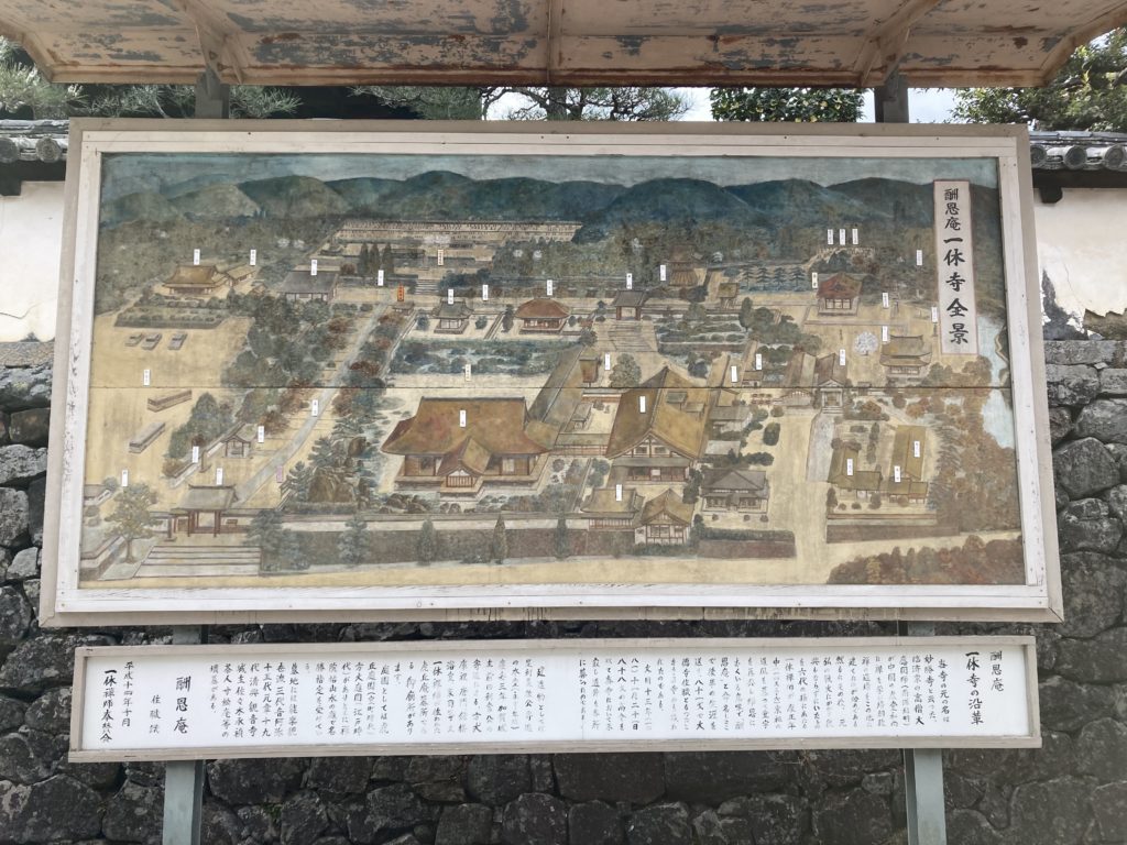 とんちで有名な一休さん(一休宗純)が晩年を過ごした臨済宗大徳寺派のお寺です。一休さんは室町時代(1394年~1481年)の僧でこの時代では珍しく88歳まで長生きしたそうです。