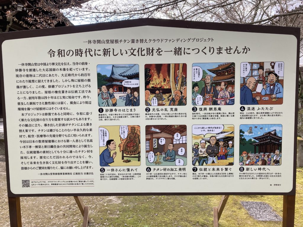 開山堂は屋根の損傷が激しいため、修繕のためクラウドファンディングが行われ、無事資金が集まったようです。